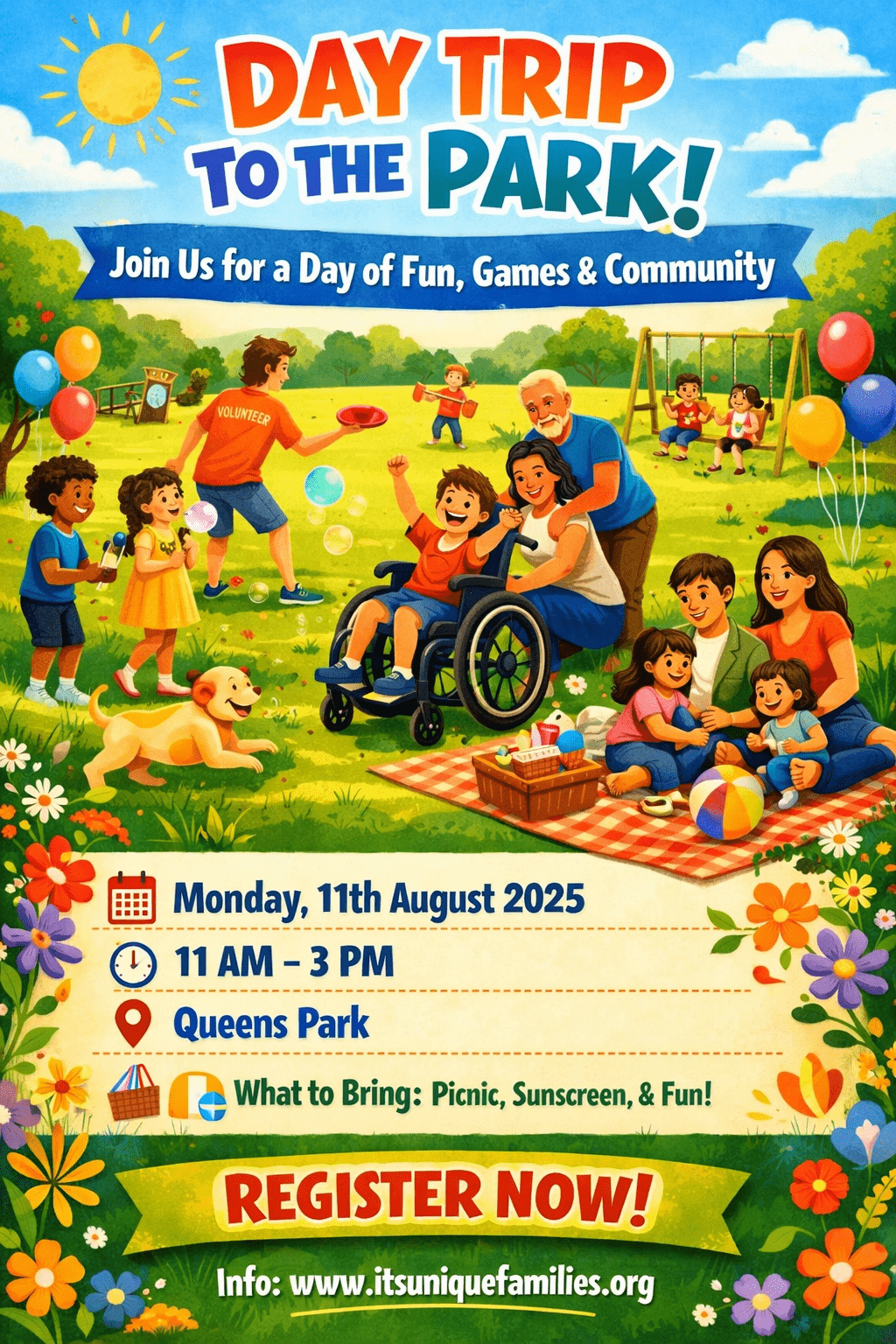 Its Unique Families is dedicated to creating inclusive, empowering experiences for families with children who have special educational needs. Through social learning, advocacy, and community engagement, we are building a world where every family feels supported, valued, and celebrated. Join us on our journey. Together, we are creating unique success stories for families. August 11th, 2025, marked a beautiful and memorable day for Its Unique Families as we gathered at the park for our highly anticipated Day Trip event. Under clear blue skies and warm sunshine, families and dedicated volunteers came together to celebrate community, inclusion, and the simple joy of spending time together in nature.