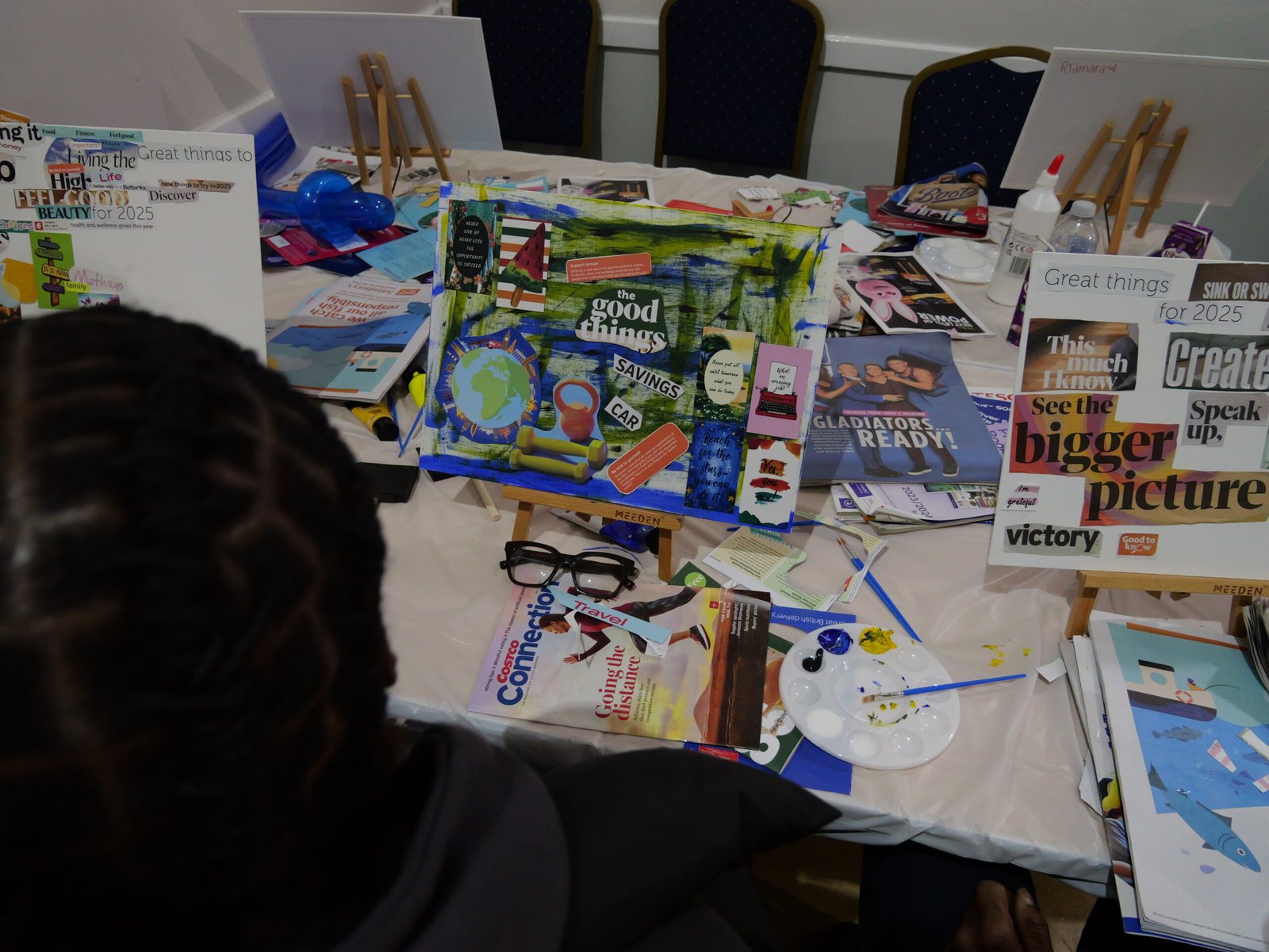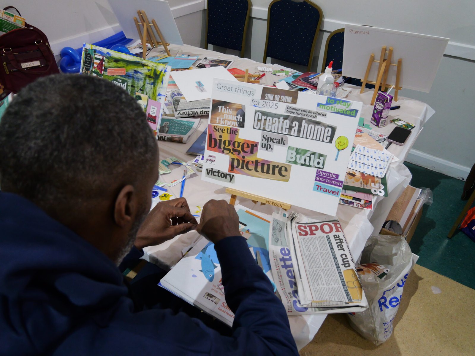 - Creative expression through cutting, pasting and designing personal vision boards